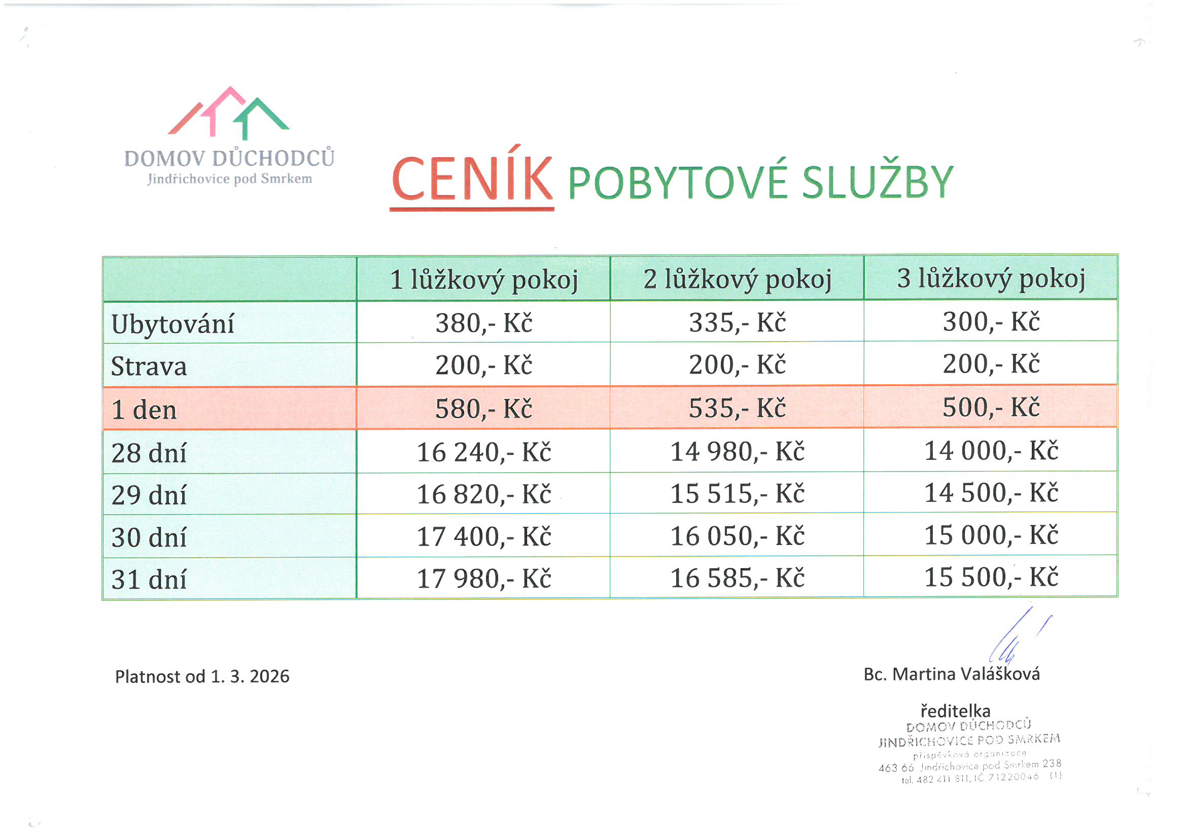 Ceník s platností od 1. 3. 2026