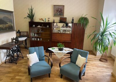 Pro reminiscenci nám na vile chyběl prostor, který by navodil pocit bezpečí, podpořil a ulehčil práci se seniory. Došlo tedy k realizaci nápadu vytvořit ze společenské místnosti ve druhém patře retro místnost. Díky vedoucí vily paní Kopecké a zaměstnancům vily Albert se podařilo změnit nápad v realitu.